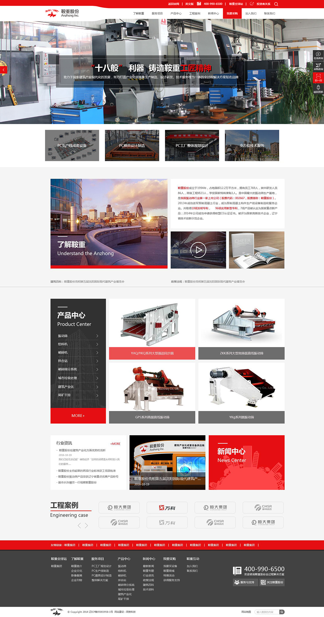 鞍山重型礦山機(jī)器股份有限公司坐落于東北地區(qū)最大的鋼鐵工業(yè)城市——鞍山。成立于1994年,占地面積12.2萬平方米,公司集科研、研發(fā)、制造于一體,擁有市場(chǎng)開發(fā)、科研設(shè)計(jì)、企業(yè)管理、加工制造等各類人才,