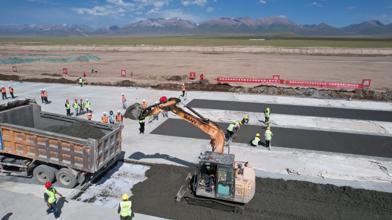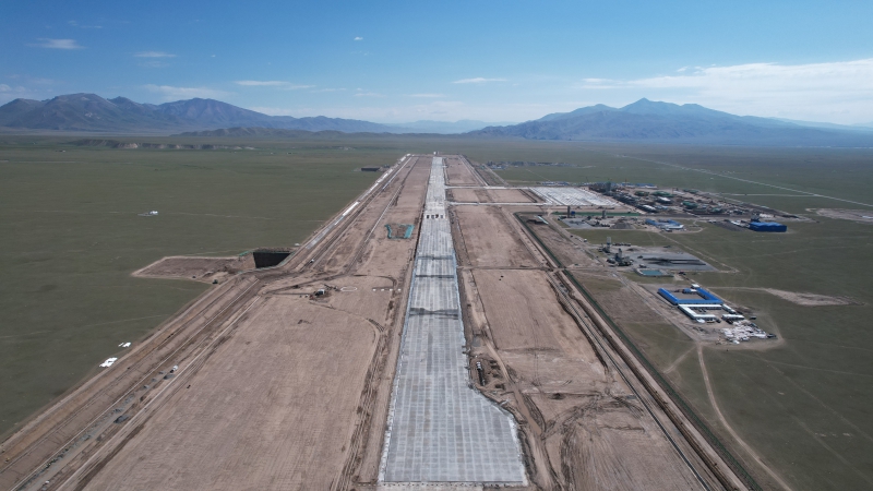8月18日,隨著現(xiàn)場最后一車混凝土緩緩倒入倉內(nèi),我公司承建的新疆和靜巴音布魯克機場跑道全線貫通。